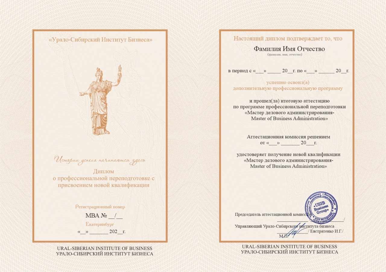 При наличии высшего образования после окончания программы вы получите диплом государственного образца о присвоении квалификации Master of Business Administration.